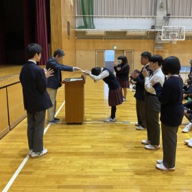 中学朝会での表彰