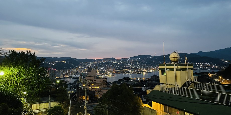 現在大きな体調不良者も無く朝食をとり長崎市内へ移動しています。天候は曇り気温は13℃で少し肌寒い稲佐山の朝です。