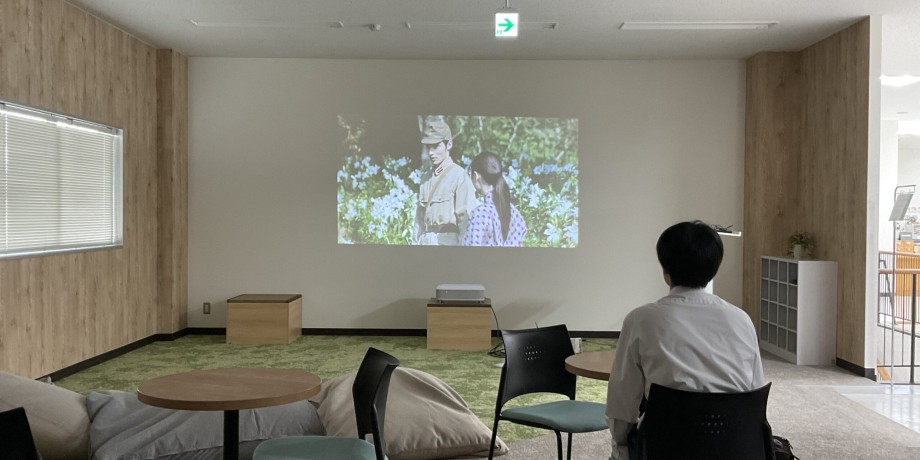 朝に告知していた通り、午後より、DVD「あの花が咲く丘で、君とまた出会えたら。」の上映会を図書館2階・多目的コーナーで開催しました。計5名の生徒・教職員が参加しました。ありがとうございました。