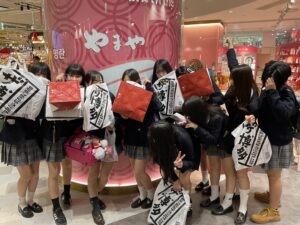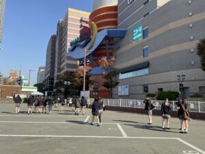 商業科の最終日は博多での自主研修です。商業施設における集客方法、回遊施策など商業科ならではの課題に取り組みます。名古屋とは異なる博多ならではの店舗にも着目して施設の特徴をレポートします。旅の疲れもありますが、みんな元気に新幹線に乗り名古屋へ戻ります。