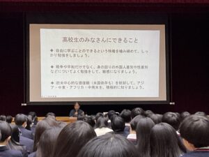 その「国連問題」については時間がなく、先生の見解をお伺いすることはできませんでしたが、個人で探究して欲しいテーマとなりました。