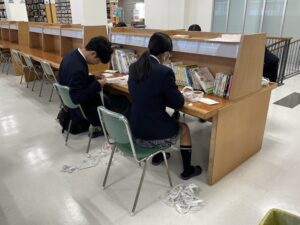 図書委員が昨日18日(木)から、蔵書管理のための作業を進めています。主な活動として、管理用バーコードシールを蔵書に一冊ずつ貼付しています。ありがとうございます。