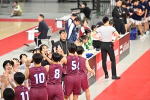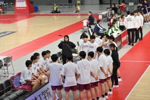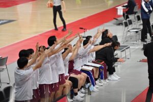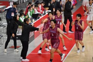 25日(木)はベスト8をかけ、倉敷翠松高校(岡山県)と対戦しました。10点差以上離されてから逆転するなど、一進一退の激戦となりましたが、惜しくも48-55で敗れ、ベスト8進出とはなりませんでした。