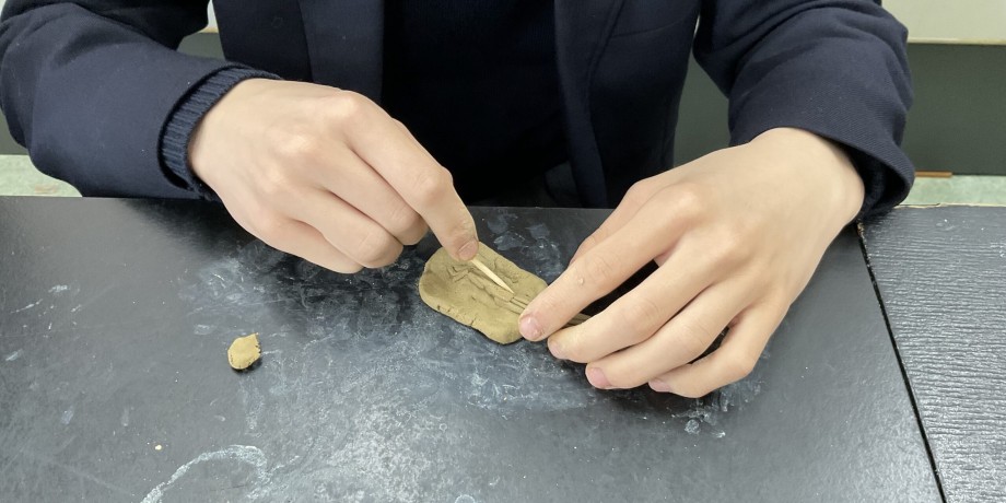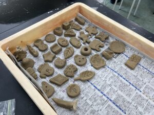 本日21日(水)、普通科2年生のあるクラスが美術の授業で、粘土の箸置きを作っていました。イベント当日、会場の一角で、それを野焼きする予定です。どんな箸置きができるのか、楽しみです。