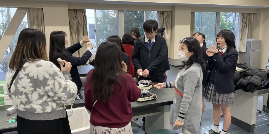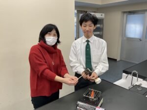 本日3日(火)の放課後、生徒たちが理科室で、マシュマロ焼きの実験を行いました。みんなで楽しくおしゃべりしながら、焼いたマシュマロを試食しました。