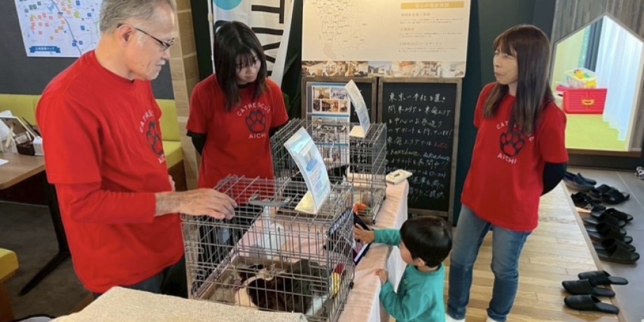 写真は、キャットレスキュー愛知からいただいた、保護猫の譲渡会に関するものです。