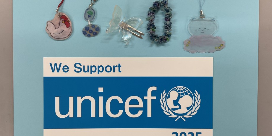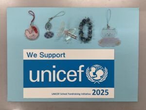 昨年、普通科2・3年生の「選択美術」の授業で行われた「文化祭と美術」。生徒たちが美術の授業で製作したキーホルダーを用いて、文化祭にて募金を集めました。そして、集まった約57,000円を(公財)日本ユニセフ協会の「ガザ人道危機緊急募金」や「ウクライナ緊急募金」に寄付しました。