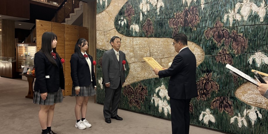 令和8年3月19日(木)愛知県公館にて行われた授賞式では、大村知事より木製の賞状が授与されました。