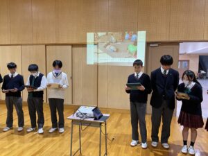 中学部では、「学習活動発表会」と「合唱コンクール」、が12月11日(木)の午前中に開催されます。各学年が1年間の総合学習のまとめとして、学年テーマに沿って、学習成果を発表します。その後は、各クラスが校歌と自由曲の合唱を披露します。