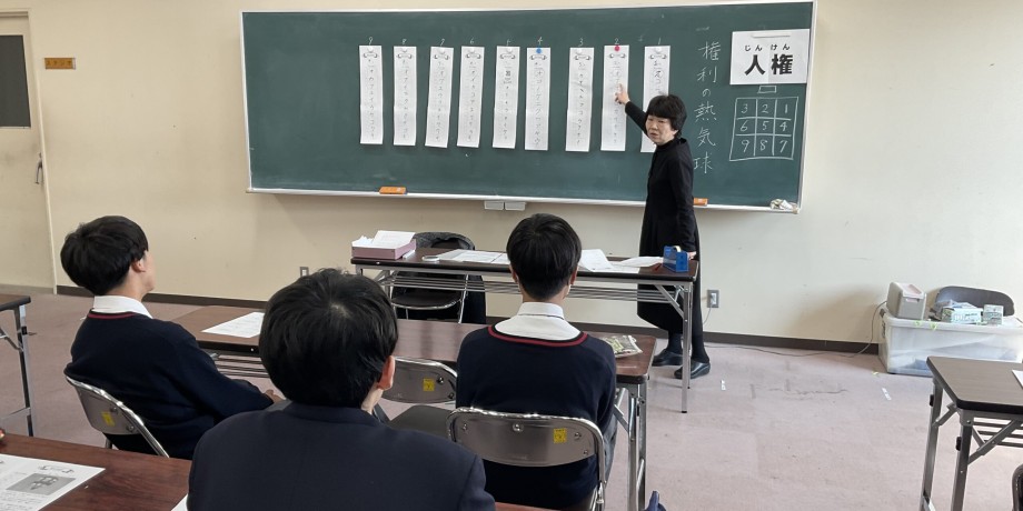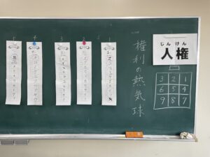 12月1日(月)の第1時限目、3年生の道徳は、スクールカウンセラー・古田先生の特別授業でした。「人権」がテーマでした。各グループで、資料に記載された10個の「権利」について話し合って、優先順位をつけ、その結果を発表しました。何を大切に考えるか、グループ間の意見の違いがよく出ており、おもしろかったです。
