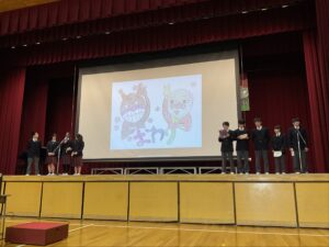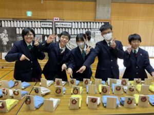 「学習活動発表会」では、各学年が濃い内容を、よく工夫して発表していました。20分ほどの発表でしたが、楽しんで観ることができました。また、体育館後方には、美術や技術家庭などで製作した生徒の作品が展示されました。生徒と保護者の方々が談笑しながら、作品を見ていた姿が、印象的でした。