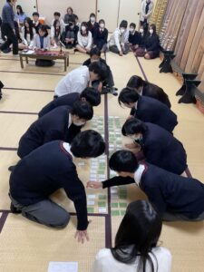 News 学校案内 概要・挨拶・沿革 伝統・やぶつばき 施設紹介 WEBスクールツアー 学校生活 年間行事 制服紹介 部活動(運動部) 部活動(文化部・同好会) 高蔵中学校 教育内容 入試情報 NEWS&TOPICS 高蔵高等学校 教育内容 進路指導 入試情報 NEWS&TOPICS HOME > 高蔵中学 > 図書館 > 中学生がカルタ大会にて優勝! 未分類 高蔵中学 高蔵高校 図書館 学校行事 中学生がカルタ大会にて優勝! 2026.01.16 昨日15日(木)の放課後、「高蔵杯争奪カルタ大会」が礼法室にて開催されました。 中学部代表の3年葵組は高校生との激戦を勝ち抜いた結果、見事優勝しました!おめでとうございます。日々の練習成果が存分に発揮され、メンバーも大変喜んでいました。 ★図書館インスタグラムはこちら お知らせ一覧に戻る