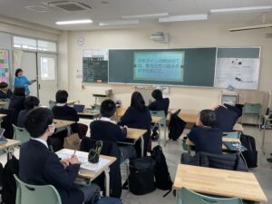 中学2年生は明日3日(火)の午後、社会見学として、日本ガイシ株式会社本社を見学します。本日、その事前学習として、同社のウェブサイトを閲覧しながら、その事業内容を簡単に確認しました。明日の見学が楽しみです。