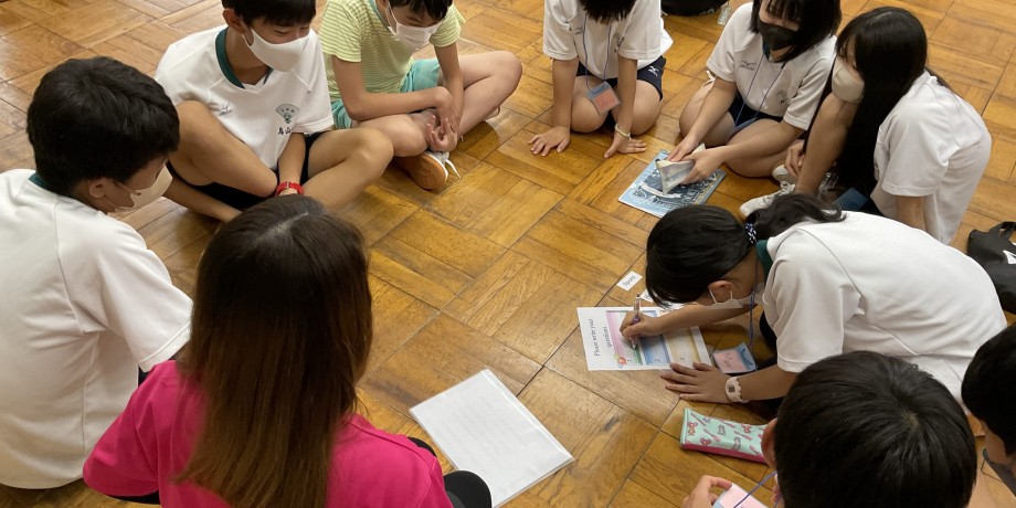 夕食と入浴を済ませ、19:00から夜のアクティビティ。ジェスチャーゲームと講師へ英語でQuestion.