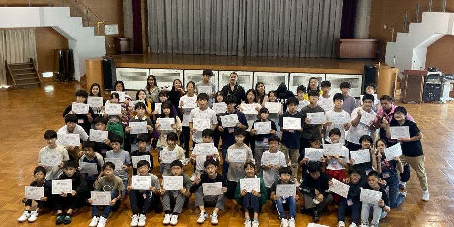 最後に担当していただいた講師から修了証を渡されて3日間のプログラムは終了。緊張していた初日には見られなかった笑顔で講師と握手したりハグしたりする姿に,生徒たちの成長を見ることができました。
